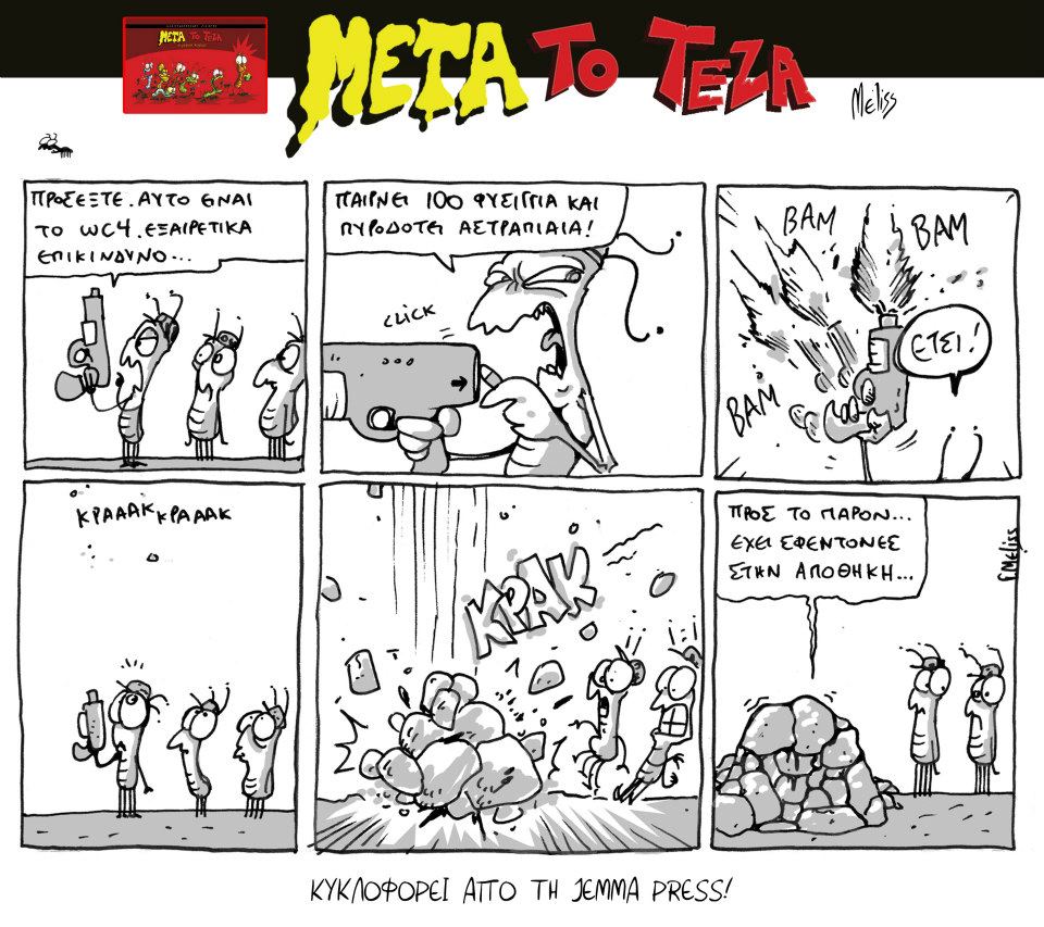 After the Raid AFTER THE RAID Design - Story: Meliss Publisher: Jemma Press Language: Greek The roaches mutate as they got sprayed by chemicals. The outcome is a gang of zombie roaches, who eat anything they can find! 1st edition (2006) buy it