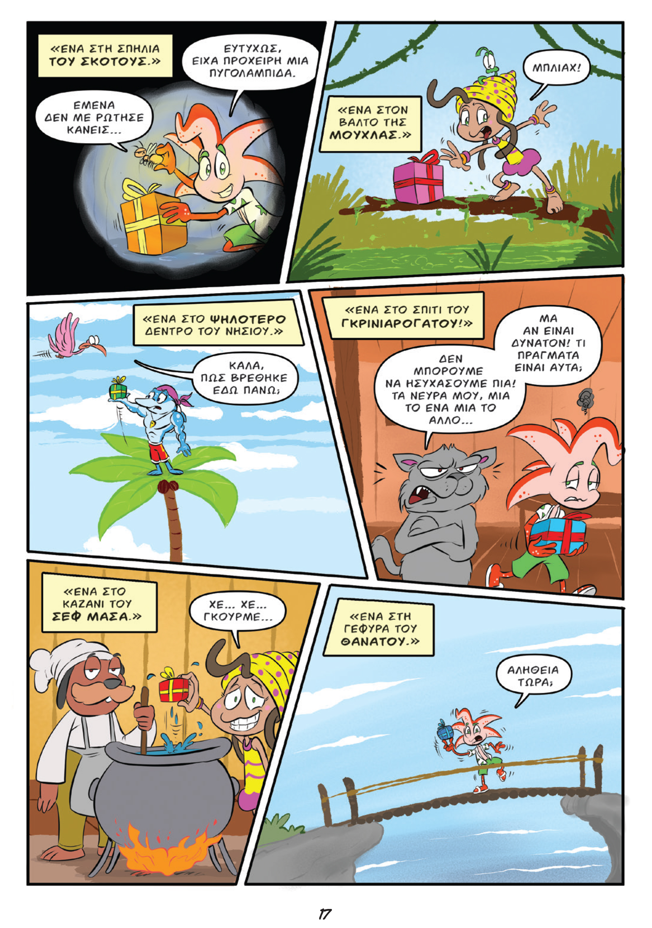 On Christmas Eve, a sudden fog causes Santa Claus and his friend, Tzaro, to lose their orientation by sledding and falling on the beautiful Island of the Sun. However, when they fall, many of the gifts that were in their bag end up in the Island of the Sun but also in the Inhospitable Ice Island ... Will Kochilenia, Asterios and Tzaro be able to find all the gifts before Christmas? And what role do the Getty-Pagetti brothers play? Story& Art: Meliss |